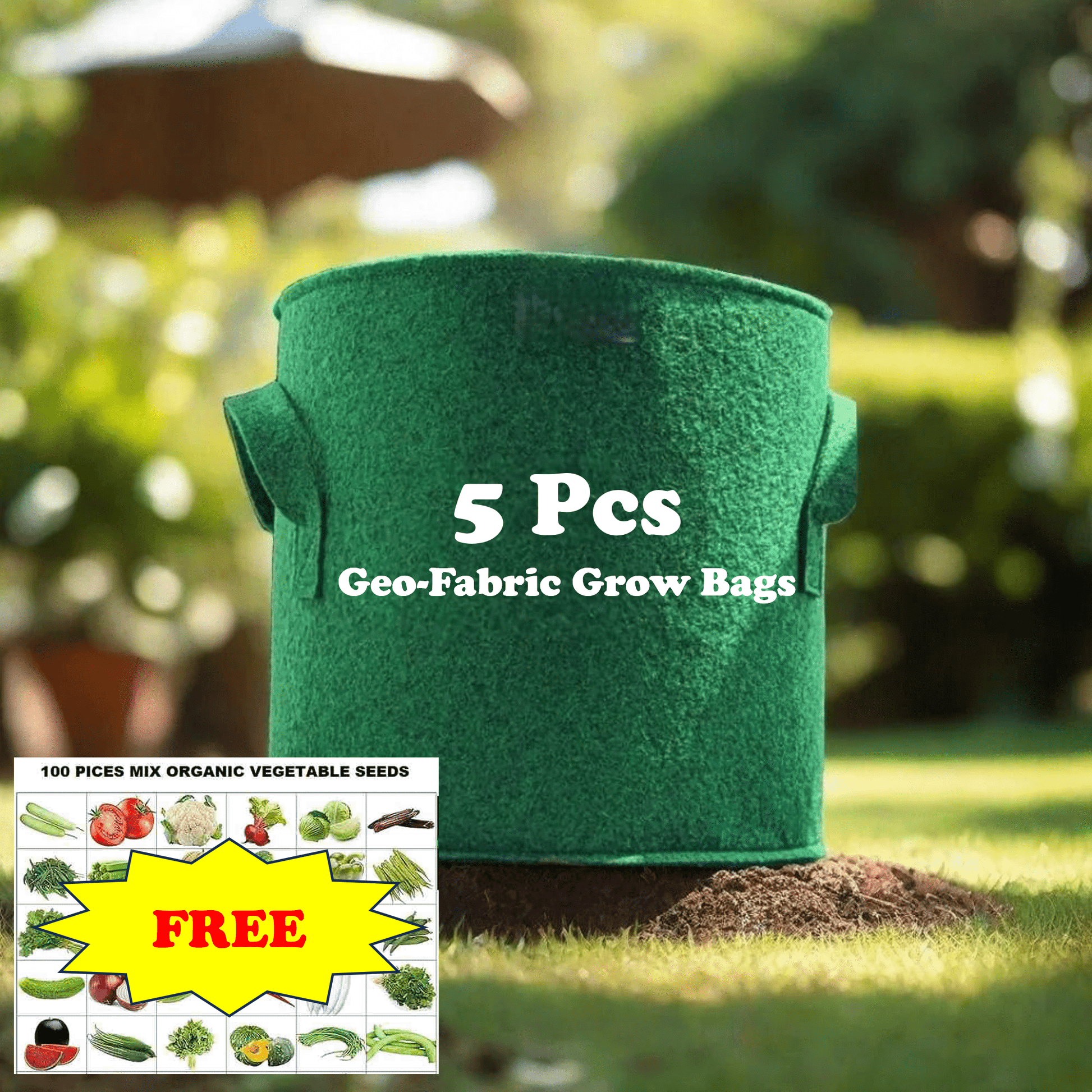 Geo-Grow™ -Geofabric Grow Bags for Planting - 5pcs Combo with FREE 100 VEGETABLE SEEDS MIX VARIETY